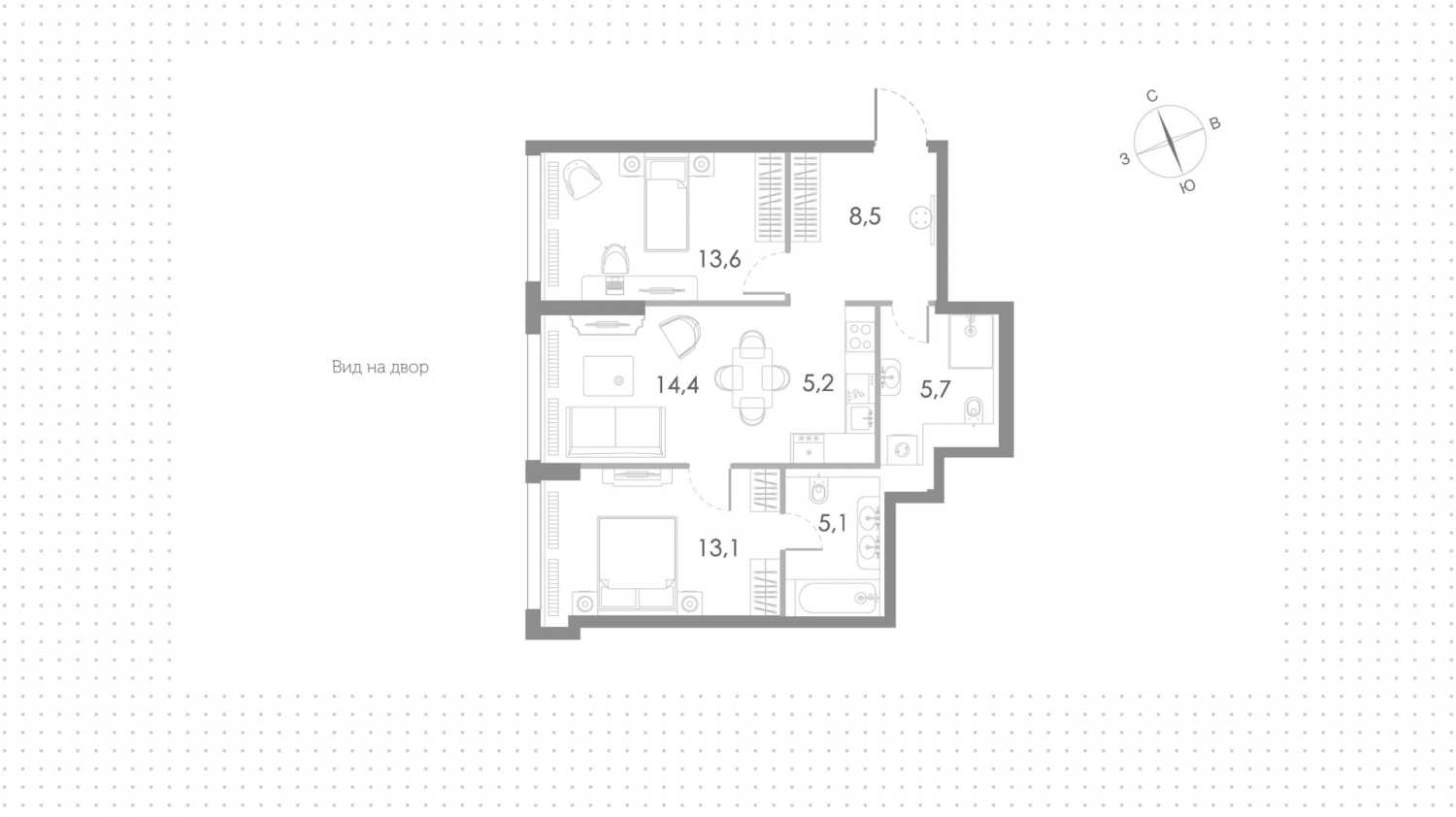 Площадь: 57 м²